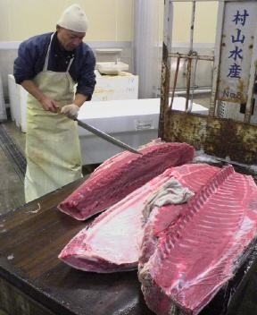 はかた魚宴は鯨と同様、マグロにもこだわります。玄界灘は周知の通り全国でも一二を争う美味しい魚が集まる漁場として有名です。魚が荒波にもまれるからというのがその理由としてよく挙げられますが、どうも寒流と暖流がぶち当たり多くの種類のプランクトンを魚が食するからだというのが第一の理由のようです。当然のことながら、玄界灘で獲れる白身魚、青魚は大変美味しいものです。故にと言っていいのか、しかしと言っていいのか、九州の人は赤身の魚に関してはあまりこだわりが無いようです。よって魚にうるさいにも関わらずマグロに関しては、どちらかというと無関心で美味しいマグロを口にした方がそう多くはないようです。はかた魚宴は九州では軽視されがちなマグロに対してもこだわりを持ち、本マグロ(もちろん天然です)を基本に厳選した良質のマグロのみを提供致しております。